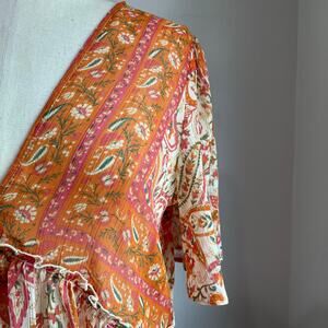 Rose Olive Sheer Paisley V Neck Boho Blouse Size M