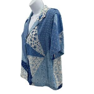 Rose + Olive Shirt Women’s Size Medium – Light Blue and White Floral Patchwork Print, Lightweight Woven Fabric for Breathable Comfort, Classic Button-Up Front Closure, Short Sleeves for Easy Everyday Wear, Collared Neckline for a Polished Finish, Straight Hem Silhouette, Relaxed Yet Tailored Fit, Modern and Feminine Styling, Perfect for Casual Outfits, Work-to-Weekend Looks, or Travel-Ready Wardrobes.