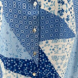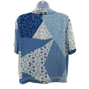 Rose + Olive Shirt Sz M Light Blue White Floral Patchwork Button Up Short Sleeve