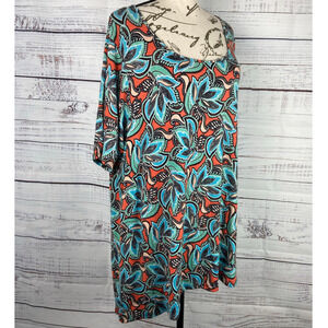 Rose + Olive Shirt Womens 2X Floral Colorful Scoop Neck Short Sleeves Stretch