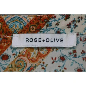 This is a Rose & Olive Silky Button Down Blouse that is a size 2X. The size tag is missing so I went by the measurements. Laying flat, it measures: Armpit to armpit-26" and the length is 31". It is in great condition.