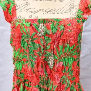 Rose & Olive Size L Hawaiian Floral ruffle tiered crop shirt/blouse