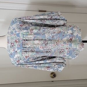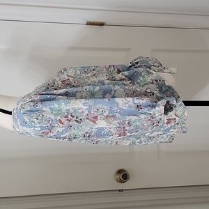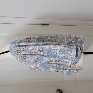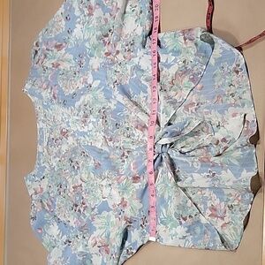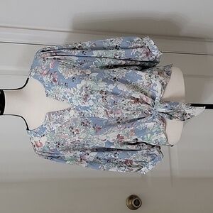Rose + Olive Size M Muted Blue, Pink, Burgundy & White Floral Tie Front Blouse