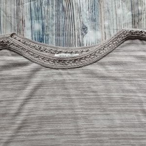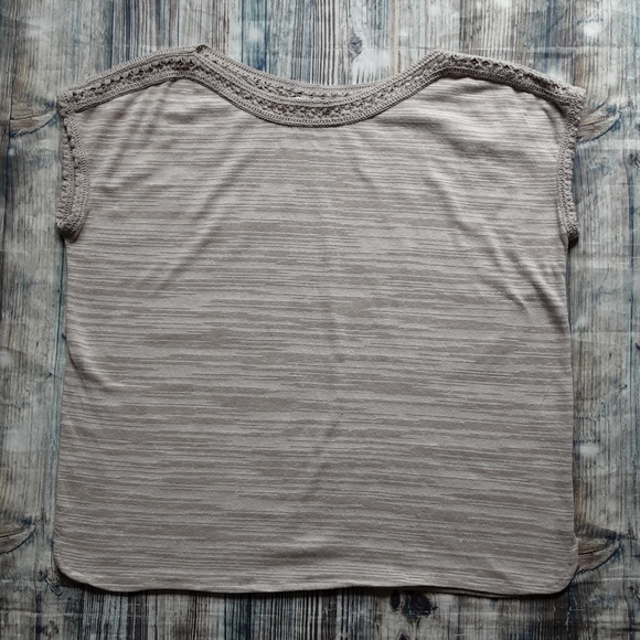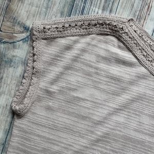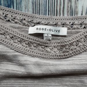 Rose & Olive dress/ casual sleeveless top. In a khaki color, loose-fitting, beautiful crochet detail at the top and arm. Size L measurements are about armpit-armpit 24 inches and top-bottom about 23 1/2 inches. In great condition.