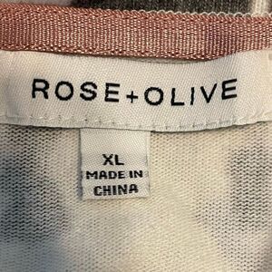 Rose & Olive Soft Knit Top Gray White Tie Dye Twist Hem Long Sleeve Scoop Neck S