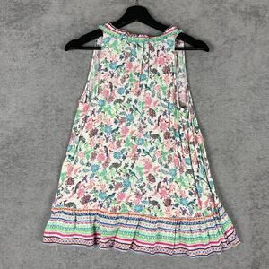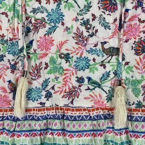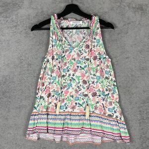 Rose + Olive Tank Top Womens Large Multicolor Floral Bird Print Sleeveless Tassel