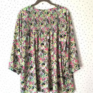 Rose & Olive Top 2X* Floral Blouse 3/4 Sleeve Cottagecore Smocking Buttons
