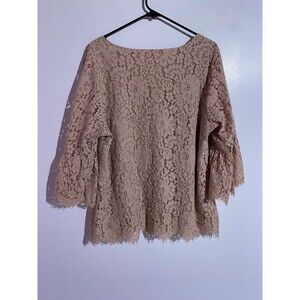 Rose + Olive Top 2X Pink Floral Boho Bell Sleeves Lace Cottagecore Relaxed
