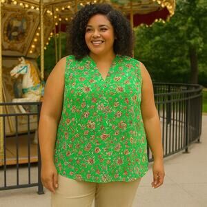 Rose + Olive Top NWT Size 3x Boldly In Bloom Sleeveless Floral V-Neck Popover