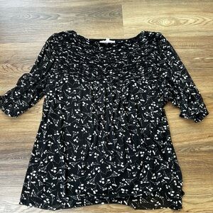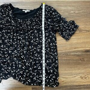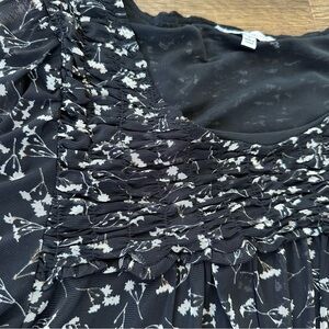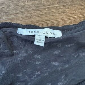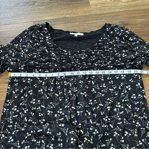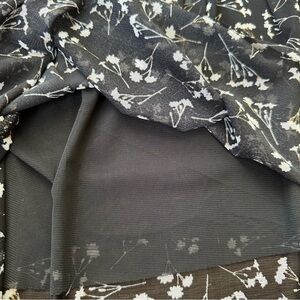 Rose & Olive Top Womens Large Sheer Layered Babydoll Blouse Black Floral Chiffon