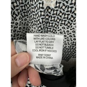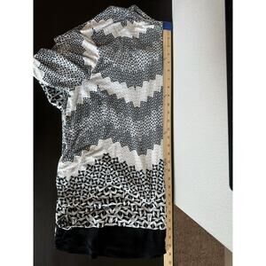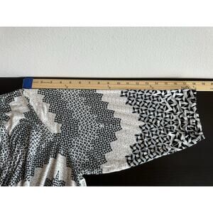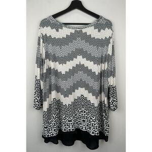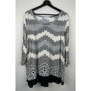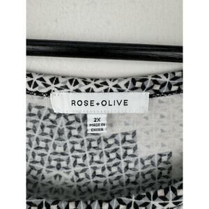 Rose & Olive Top Womens Size 2X Black White 3/4 Sleeve Geometric Artsy Stretch