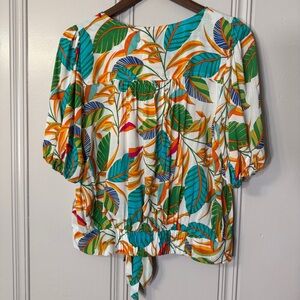 Rose Olive Top Womens Small Floral Flowy Rayon Tie Front Button Blouse Shirt