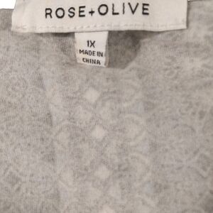 Rose & Olive Tunic All Season Geo Star Pattern w. Colorblock Hem Flowy Plus 1X