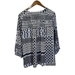 Rose & Olive Tunic Top Sz 1X Blouse Boho Patchwork Print Cottagecore Career