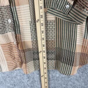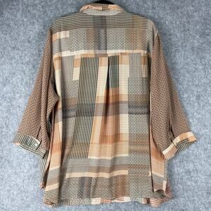 Rose Olive Tunic Top Woman 3X Button Up Geometric 3/4 Sleeve Lightweight