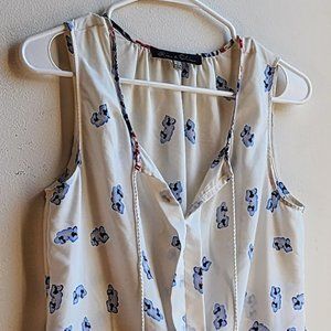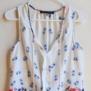 Rose & Olive White/Navy/Red Floral Sleeveless Blouse Size Small