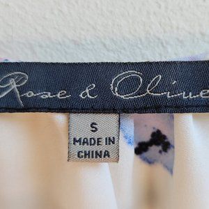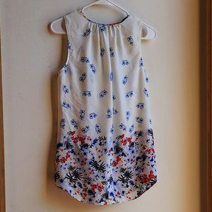 Rose & Olive White/Navy/Red Floral Sleeveless Blouse Size Small. Elegant and dainty. Wear as a layer or by itself. 100% polyester. Excellent condition.