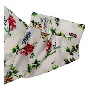 Brand: Rose + Olive Item Type: Blouse / Top Size: 1X (Plus Size) Color/Print: White with Floral Pattern Fabric: Lightweight Chiffon Fit: Relaxed Fit Neckline: V-Neck Sleeves: 3/4 Sleeve Accents: Pleated accents Style: Tunic style Versatility: Suitable for casual and business occasions Seasonality: Perfect for all seasons (specifically mentioned for summer, fall, and spring fashion collections) Care: Hand wash only Key Features: Stylish, versatile, trendy touch, easy care.