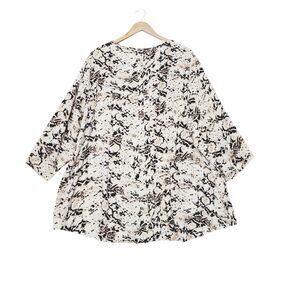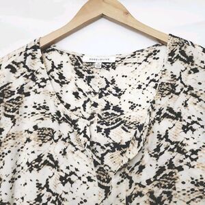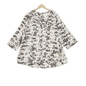 Rose & Olive Women Snake Print Popover Top Size 3X Ivory Split V Flowy Office
