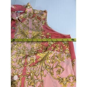 Rose & Olive Womens 1X Pink Chain Print Button Up Top Old Money Office