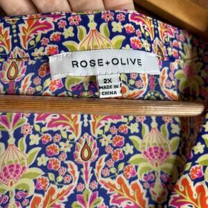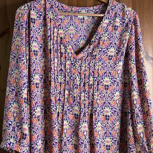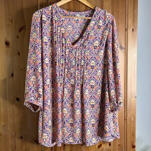 Rose & Olive Women's 2x Pink Floral 3/4 Length Sleeve Pleated Blouse Boho Chic