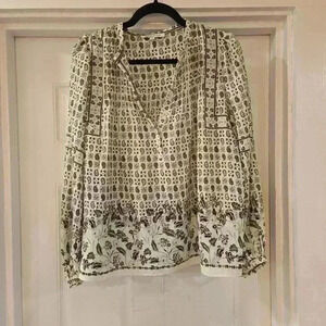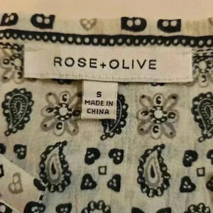 Rose & Olive Womens Balloon Sleeve Boho Peasant Tunic Top Cream Black Size Small