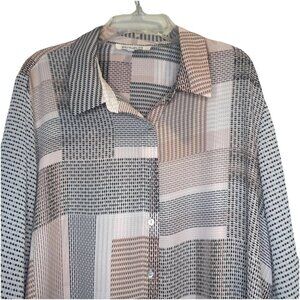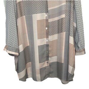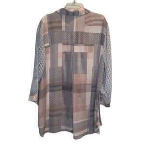 Rose + Olive Women’s Colorful Patterned 3/4 Sleeve Button Up Blouse Top Sz 1X