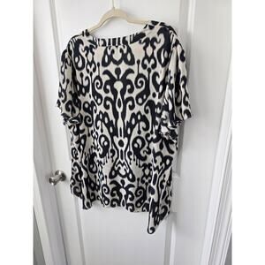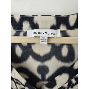 Rose & Olive Women's Cream and Black Print Short V Neck Top Size 3XL