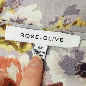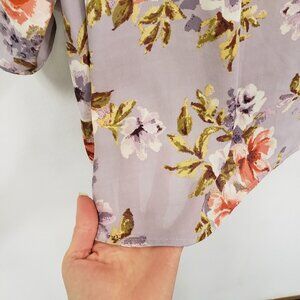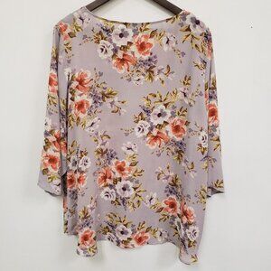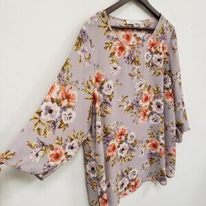 Rose & Olive Womens Floral Flare Sleeve Sheer Top Size 2X Purple Pastel Church