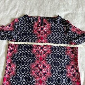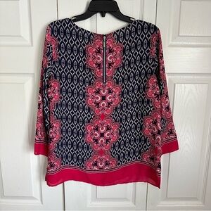 Rose & Olive Womens Pink Navy Geometric Long Sleeve Top Sz L Boho Career Flowy
