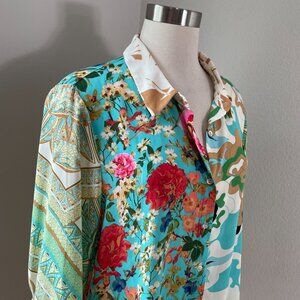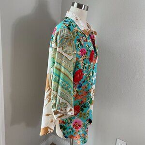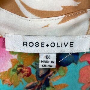 Rose + Olive Womens Plus 1X Multicolor Button Up Blouse 3/4 Sleeve Shirt Top