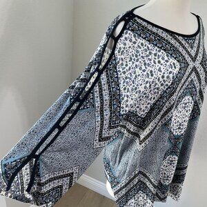 Rose + Olive Womens Plus 3X Geometric Tunic Top Open Sleeve Detail Stretch Shirt