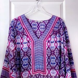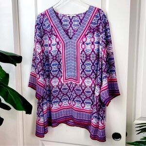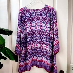Rose + Olive Women’s Plus Size Boho Medallion Pink Purple Blouse- 3X