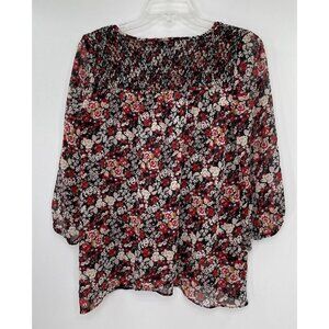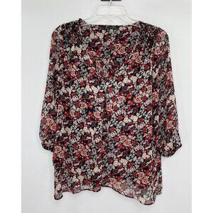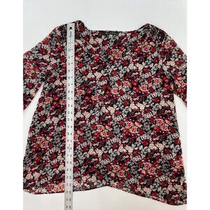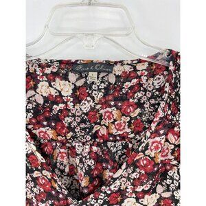 Rose & Olive Women's Red Black Floral V-Neck 3/4 Sleeve Layered Top Size S