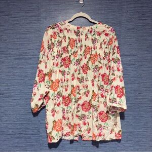 Rose + Olive Women’s Top Plus Size 2XL Floral V-Neck 3/4 Sleeve Flowy Relaxed