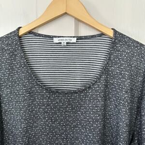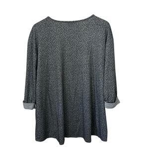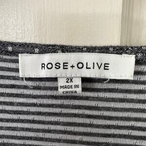 Rose + Olive Women’s Top Size 2X Gray White Mixed Media Dots Stripes Pullover Soft Comfort 3/4 Sleeve Round Neck Casual Lounge Work