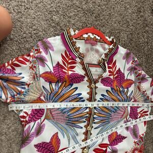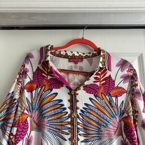 Rose & Olive Women’s Vibrant Scarf Printed Blouse Top Sz XL Pink Resort