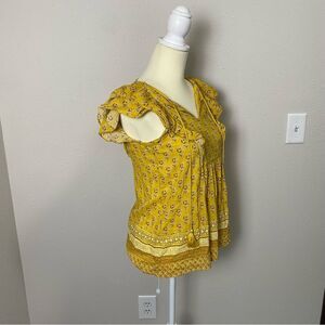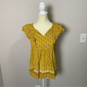 Rose + Olive Yellow Boho Short Flutter Sleeve Top W/ Tassels Women's Size Small