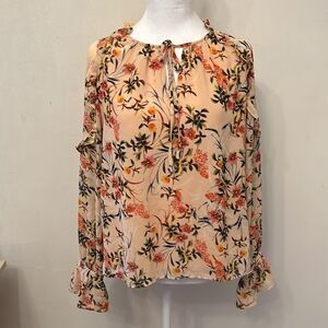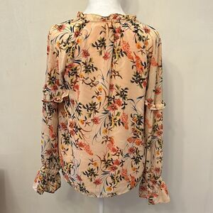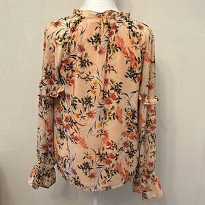 Rose + Olive peach floral ruffle long sleeve blouse Size S EUC