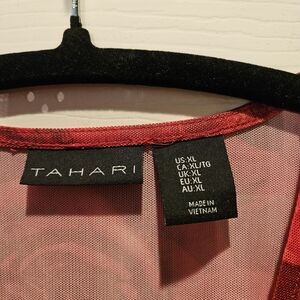 Elegant sheer top by Tahari. Vibrant red color. Ideal for layering.