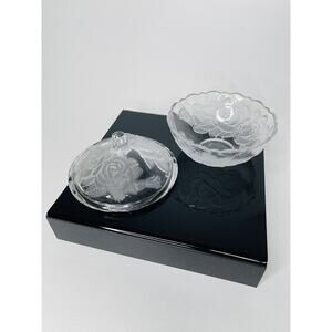 Rose Petals Glass Candy Bowl Covered Box Home/Room Decoration Preloved