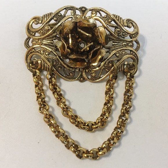 Rose Pin Brooch Vintage Ornate Scroll Filigree