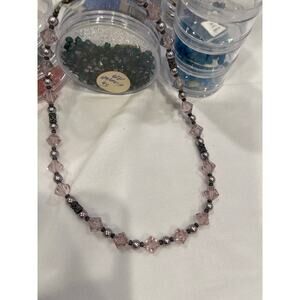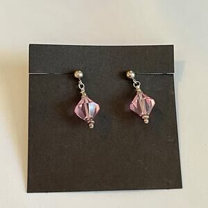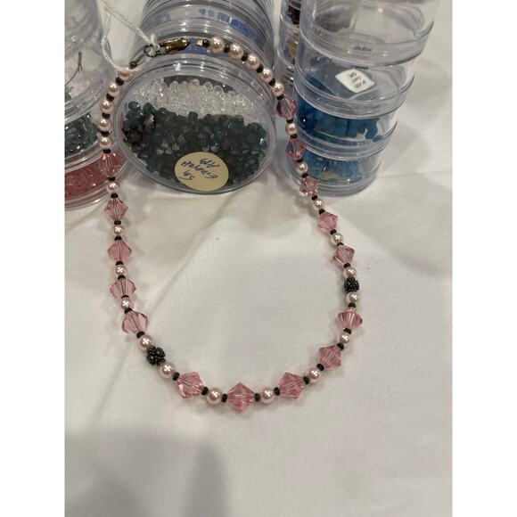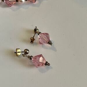 Rose Pink Austrian Crystals & Pearls 16” Necklace Matching Post earrings Set