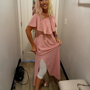 Rose Pink Maxi cotton dress, sleveless or off shoulder