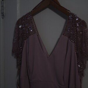 Rose Pink Prom Dress with beaded tranlsucent puffy sleeves: Size: 18W