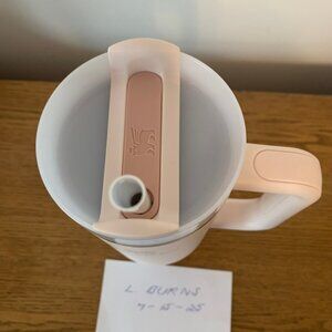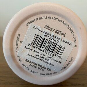 This listing is for a Rose Quartz 2.0 30-ounce Stanley Quencher. It has been used once and is in like-new condition. It has been hand-washed, never put in the dishwasher. Also included is a matching silicone boot by Etch & Ember.