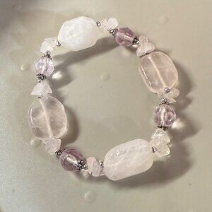 Rose Quartz & Amethyst Color Beaded Stretch Bracelet Women. Adjusts somewhat due to stretch cord construction. Unbranded. Pale, light colors.