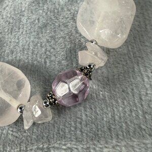 • Features rose quartz and amethyst color beads