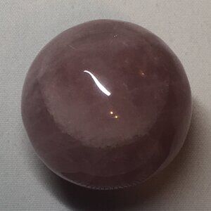 This is a good medium pink with white lines (the unlit pictures are darker than my eyes see, so I've featured the photos on black as the closest, but in brighter light, the sphere is lighter pink than any of the photos show). You can see there are some natural fracture flaws that were not completely polished out.