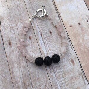 Gemstone bracelet with rose quartz and lava stone. Measures 7.5 inches
